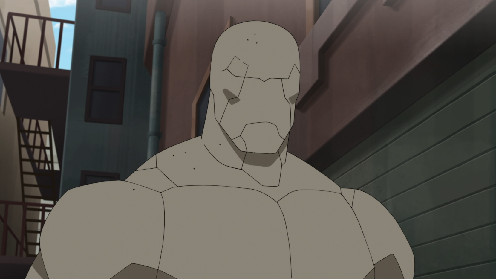 The rock-skinned enforcer Titan making his debut as a powerhouse in the local crime scene.