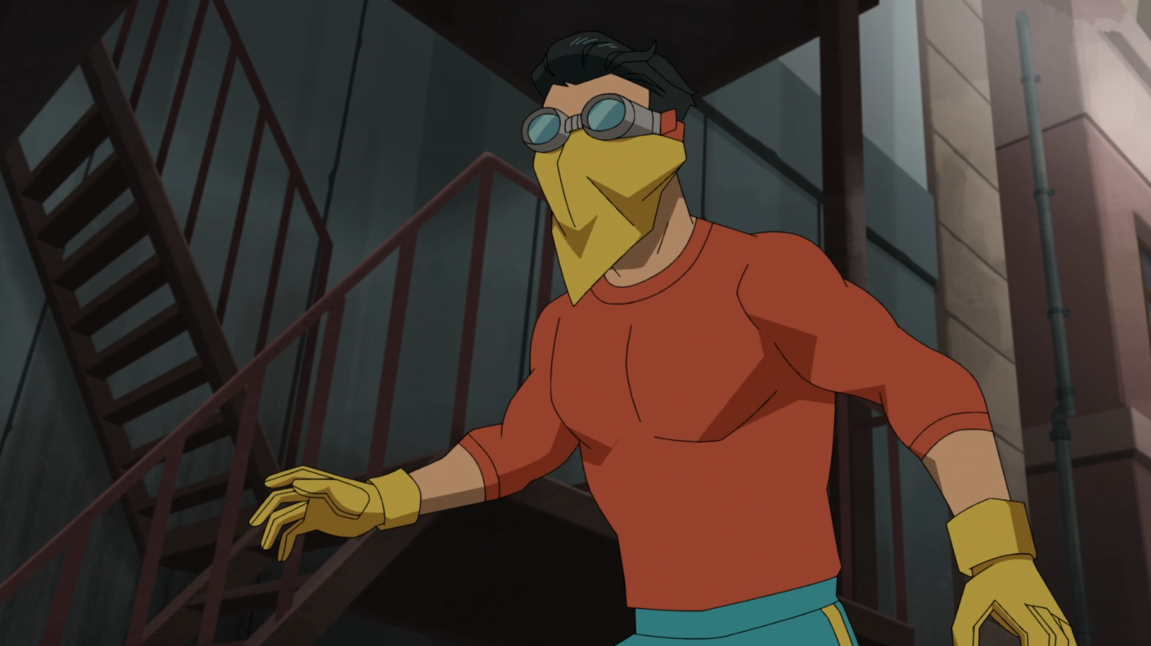 Mark Grayson testing out his prototype look before adopting the name Invincible.