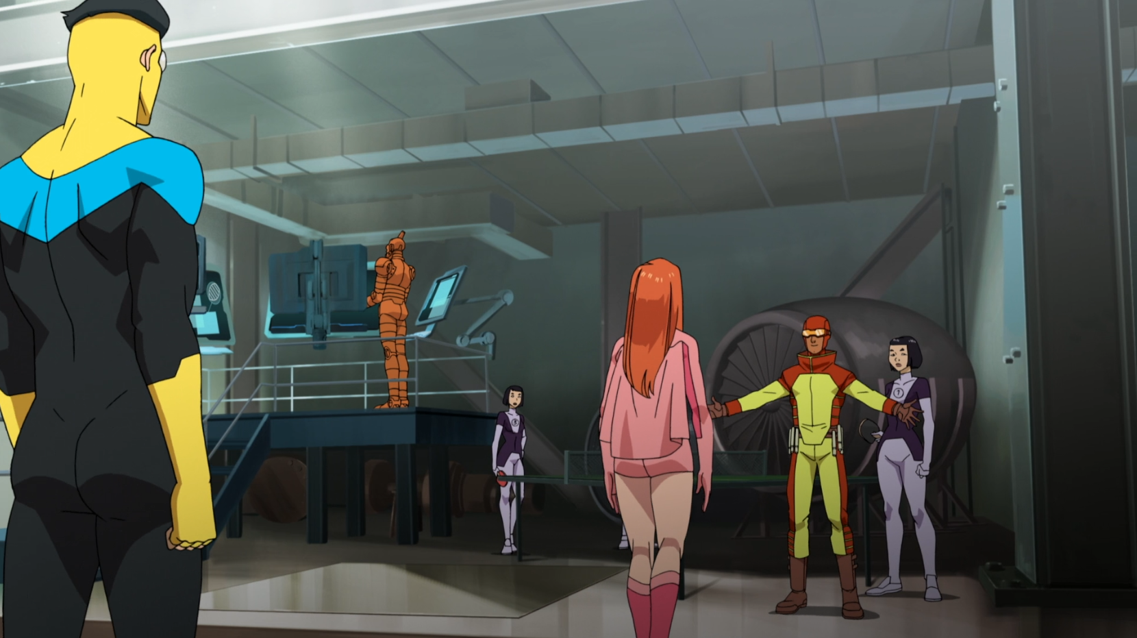 Expanding his world: Invincible gets his first look at the Teen Team's secret base of operations.