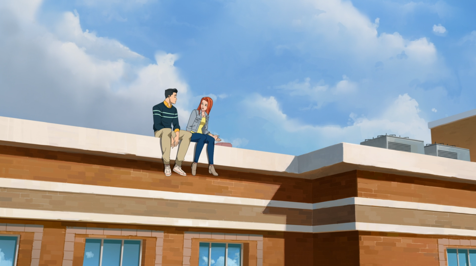 A pivotal character moment in Episode 2 where Mark and Samantha Wilkins (Atom Eve) realize they attend the same high school. This discovery creates an immediate bond between them, as they are the only two people in their daily lives who truly understand the pressure of balancing academics with global defense. Their conversation on the school grounds marks the beginning of a deep friendship and mutual respect that defines much of the series.