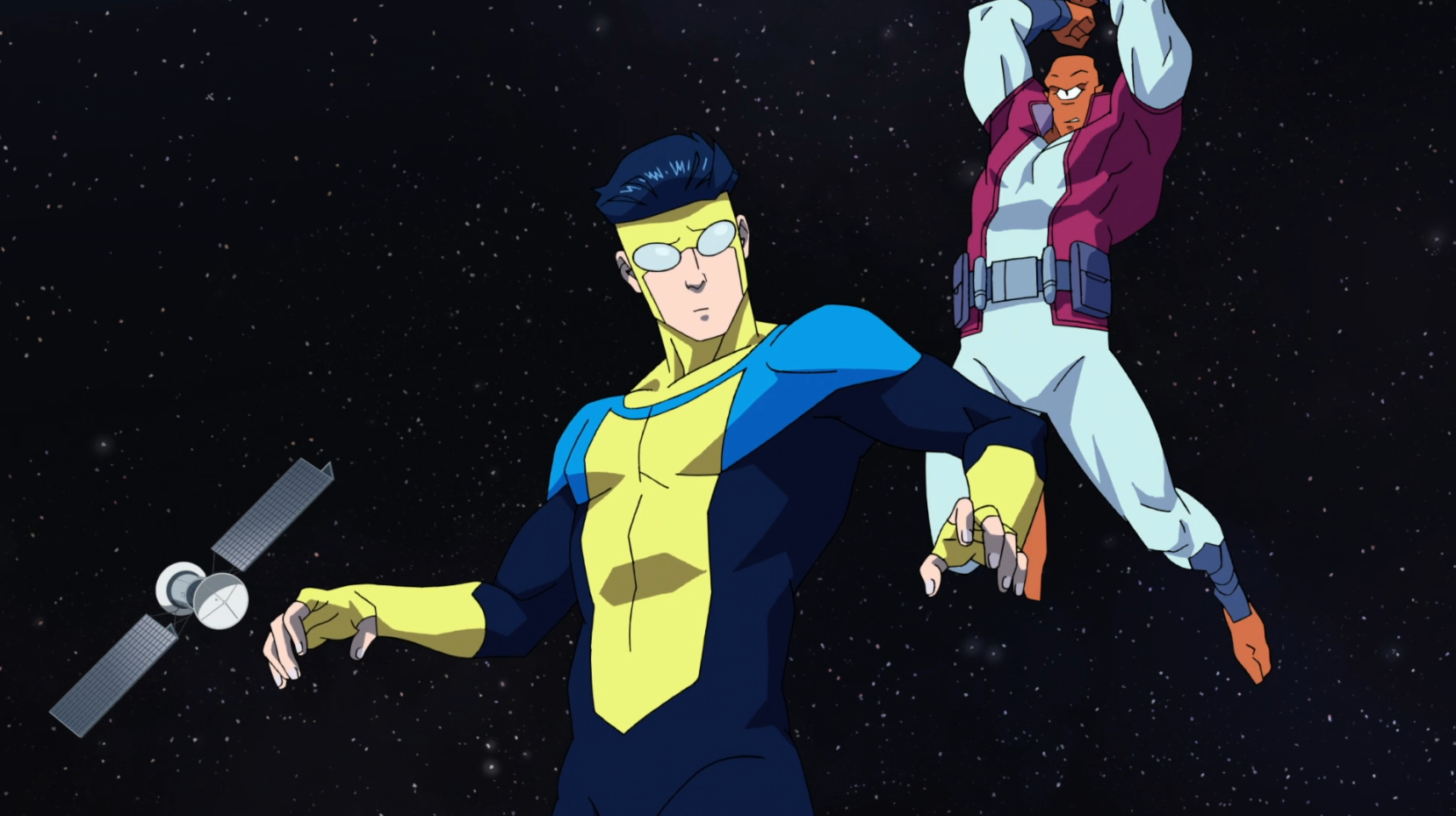 Mark's first solo mission for the GDA takes him into Earth's orbit to intercept an unidentified flying object. There, he encounters Allen the Alien, an Evaluation Officer for the Coalition of Planets. The meeting starts off contentiously with a brief skirmish as Mark attempts to defend his planet, showcasing his growing power in zero-gravity combat. This encounter eventually shifts from a fight to a peaceful conversation, introducing Mark to the broader galactic political landscape beyond Earth.